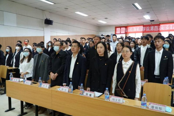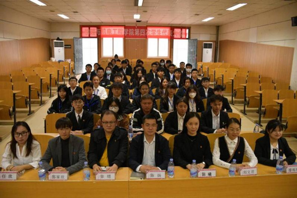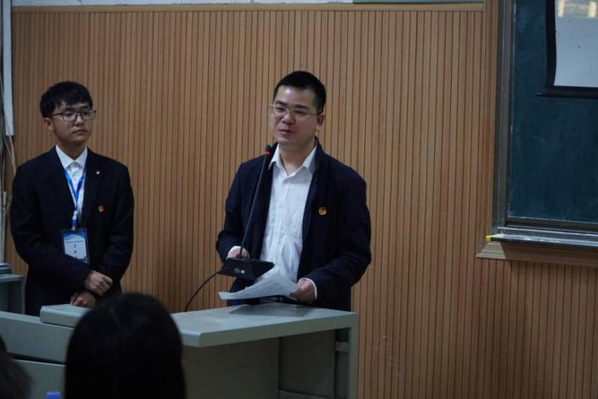 开幕式第二项,校学生会代表曹鑫发言。他代表校学生会表示对物机学院学生会工作的肯定以及对其未来发展的希望,并预祝物机学院第四次学生代表大会取得圆满成功。
