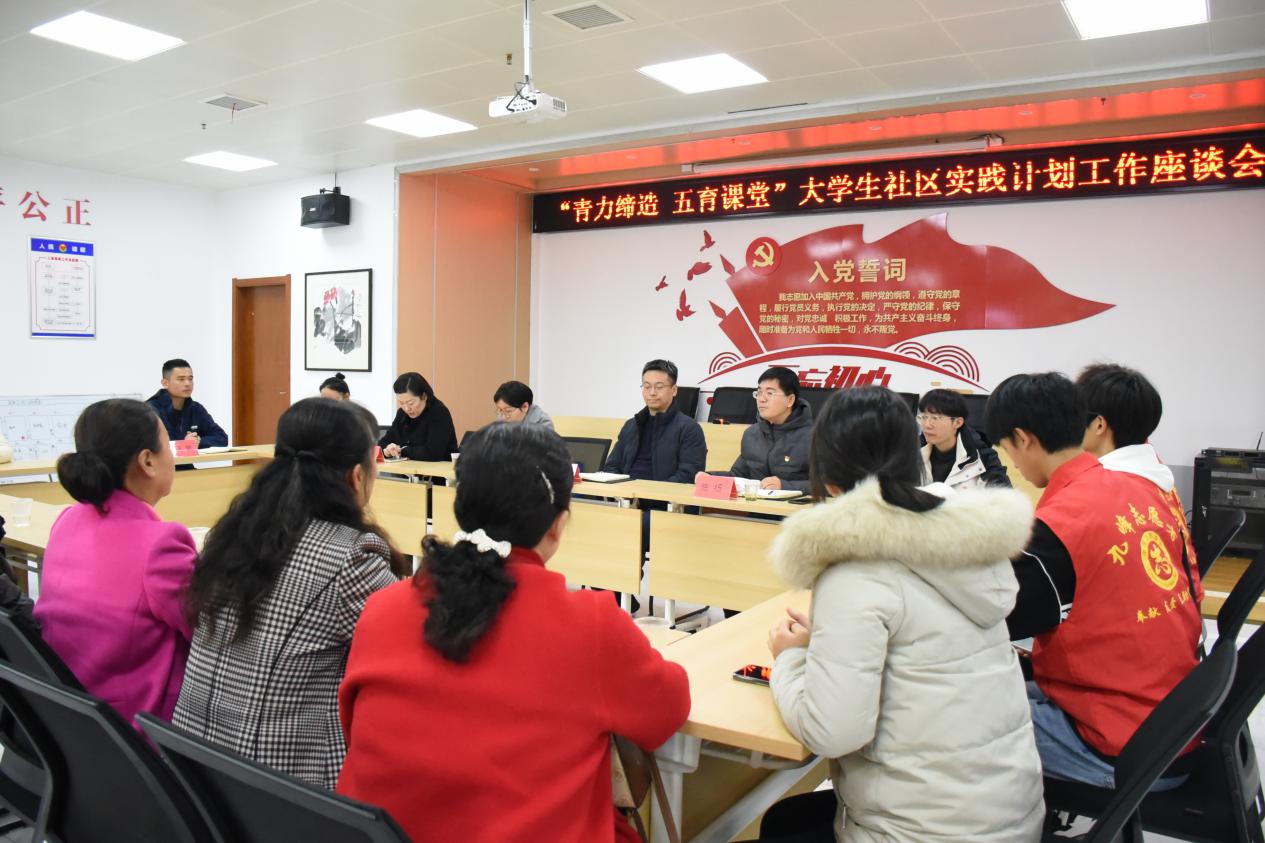 本网讯(通讯员 邓哲皓)为推进william威廉中文(以下简称“物机学院”)“青力缔造 五育课堂”大学生社区实践计划,加强社区科普教育工作。11月14日下午,物机学院党委书记吴田、院长李莎、党委副书记陈杨、学工办主任冯媛媛、分团委书记任欣、青年志愿者协会指导老师郭家欣、志愿者代表赴武汉仁尚里社区开展工作座谈会,仁尚里社区书记王聪、社区工作人员和居民代表参会。王聪主持会议。