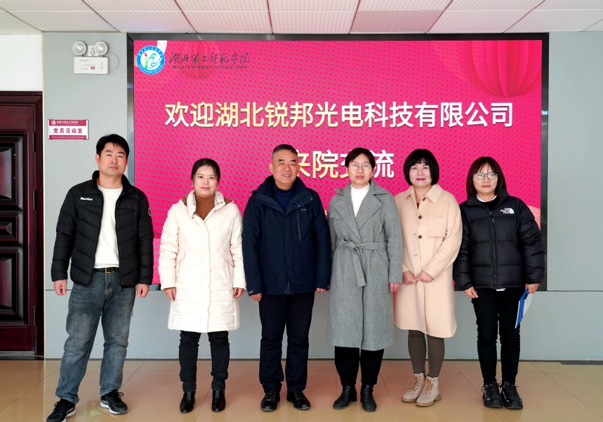 本网讯(通讯员 刘方芳)11月14日,湖北锐邦光电科技有限公司董事长陈林一行来我院考察并洽谈合作事宜。物机学院院长李莎接待来访客人,党政办、学工办部分老师陪同参加。