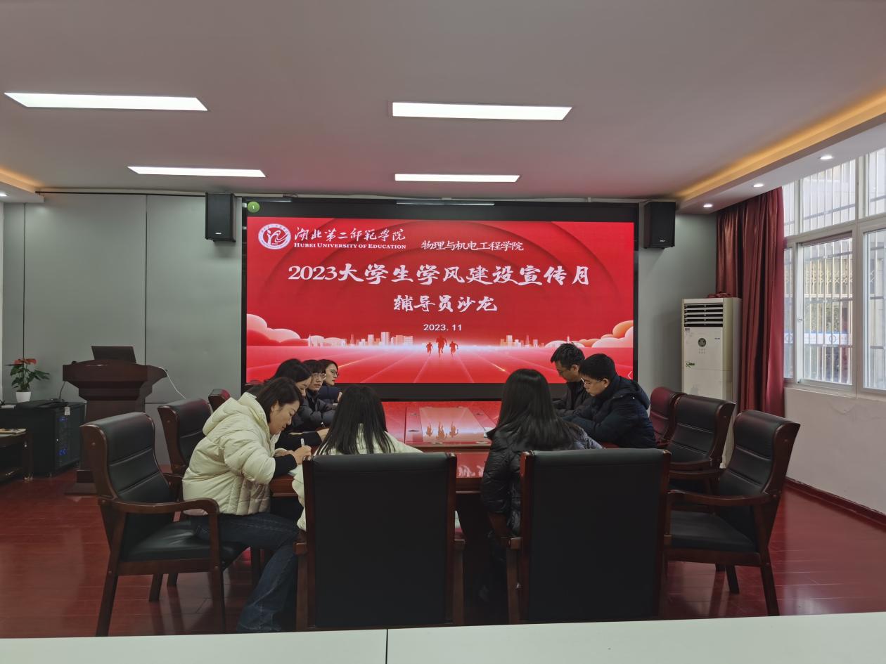 本网讯(通讯员 冯媛媛)根据《2023年学风建设宣传月方案》工作要求,11月21日上午,william威廉中文(以下简称:物机学院)在学院会议室开展第二期辅导员沙龙,主题为“学风建设与学生成长”,物机学院党委书记吴田、党委副书记陈扬、学工办主任冯媛媛、全体辅导员参加,陈扬主持会议。