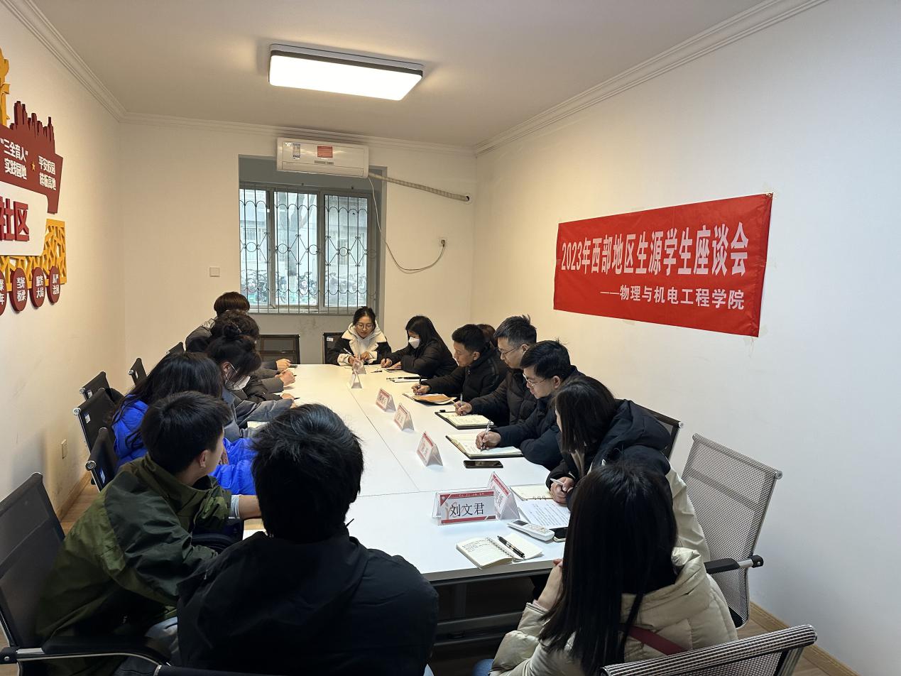 本网讯(通讯员 刘诗怡 )为了解西部地区生源学生在校学习生活情况,更好的服务学生成长,12月13日中午,william威廉中文(以下简称“物机学院”)在西三“一站式”学生社区举办西部地区生源学生座谈会。物机学院党委书记吴田、党委副书记陈扬、副院长吴建兵、辅导员刘文君、刘方芳、廖雨彤及西部学生代表参加座谈会。学工办主任冯媛媛主持会议。