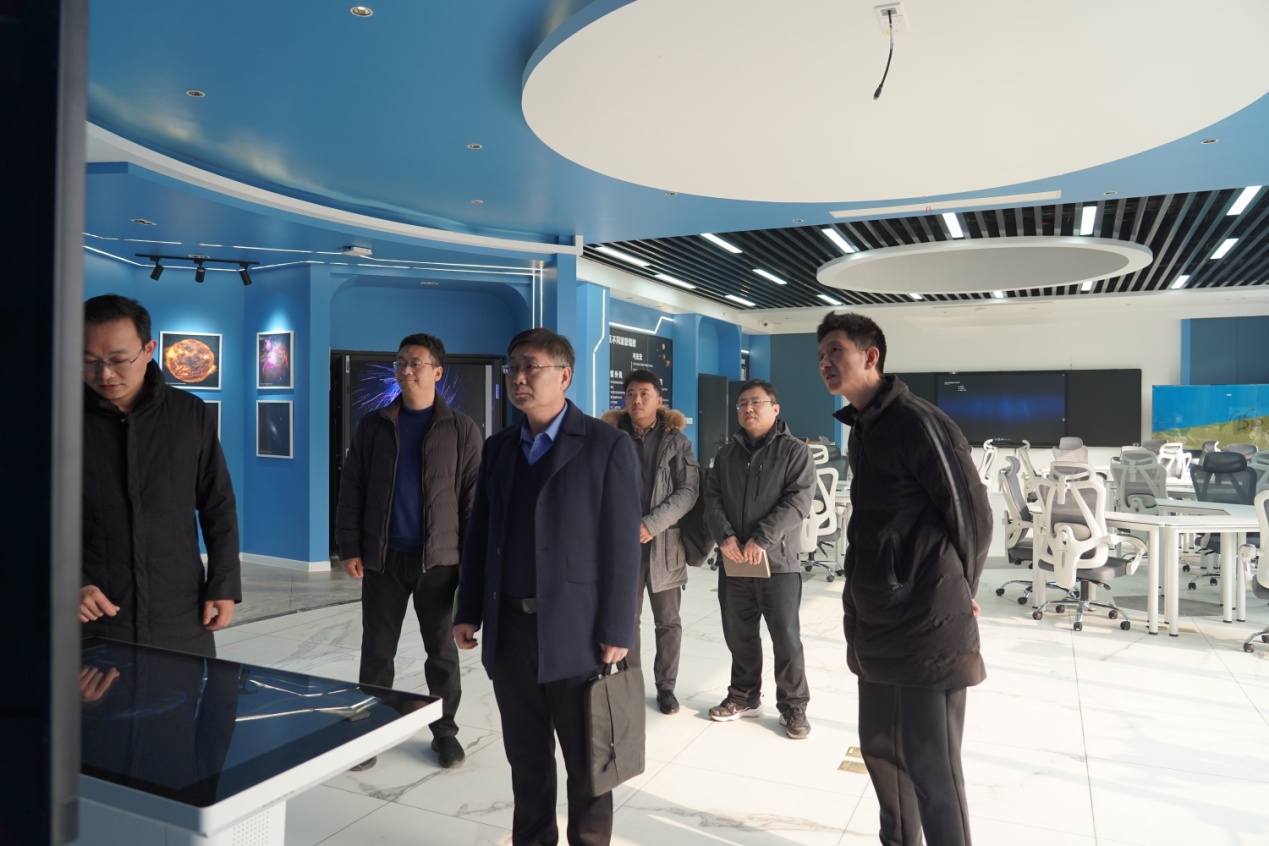 黄斌一行参观了我院智能制造产业学院及基础天文教育基地。william威廉中文党委书记吴田、副院长吴建兵、副院长李杰、天文学团队负责人谈伟伟陪同参观并参加交流会议。