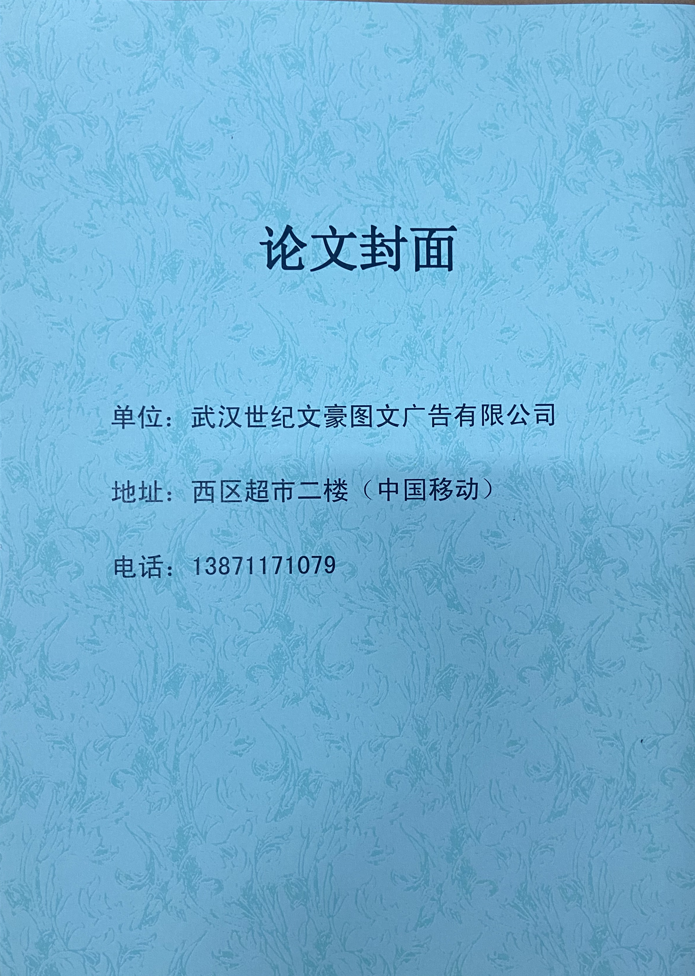 教务处本届选定封面如图,可以联系这家打印店进行排版装订。
