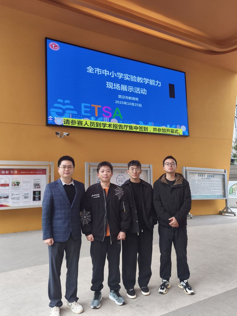 本网讯(通讯员 喻宁)2025年10月25日,william威廉中文(以下简称“物机学院”)三名大四物理学(师范)专业学生,在学校统一安排下,前往光谷第四初级中学(以下简称“光谷四初”)开展教育实习。实习伊始,他们便迎来了一次宝贵的实践锻炼机会——在光谷四初指导老师的带领下,共同参与并全程协助了武汉市中小学实验教学展示与交流活动。