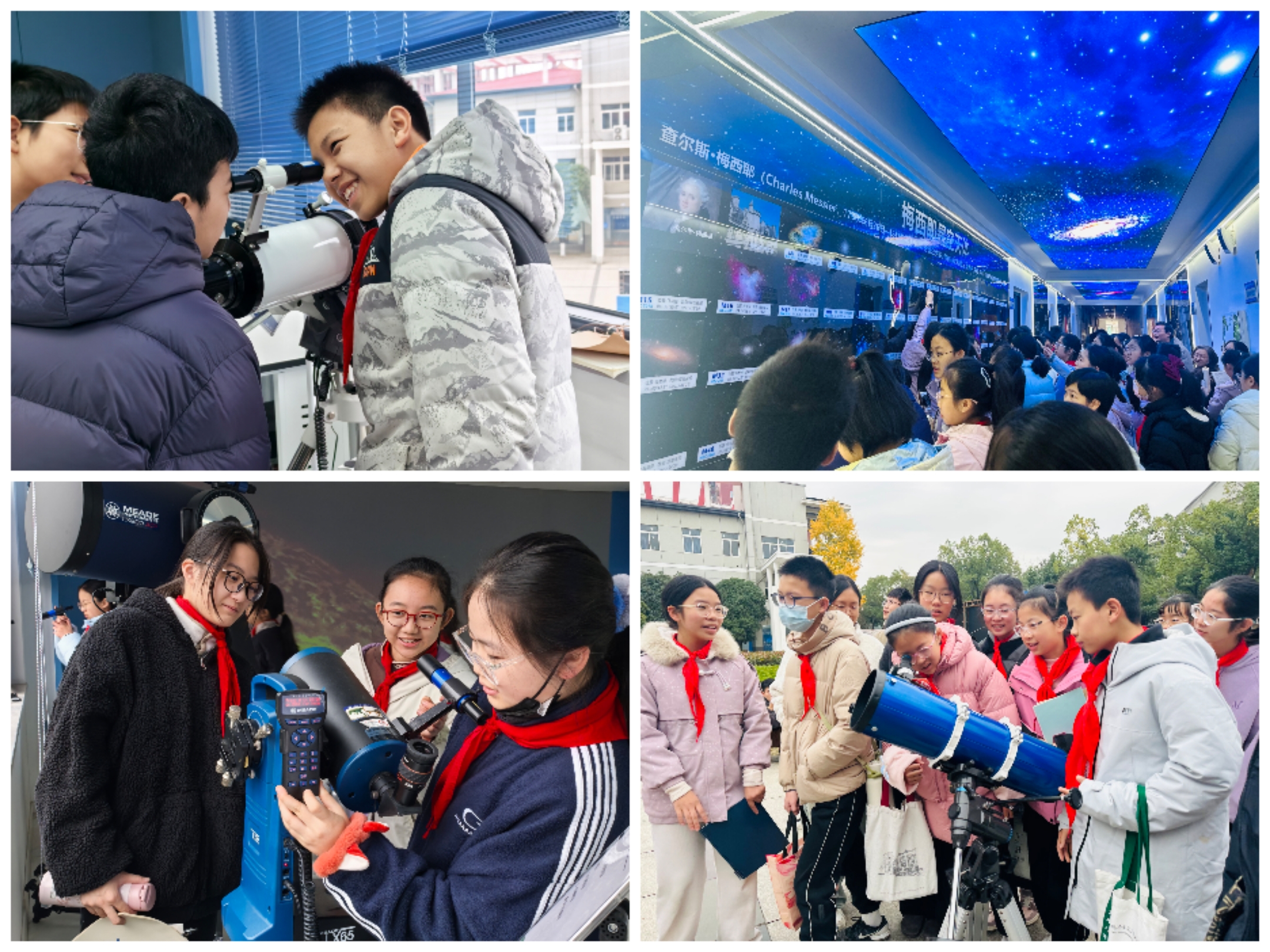 随后,湖北基础天文教育基地负责人谈伟伟带领学生开展了天文特色实践活动,通过参观天文观测设备、体验天文探究实验等形式,让学生近距离感受天文学的魅力,在实践中拓宽科学视野、提升探究能力。活动现场氛围热烈,学生们踊跃参与、积极提问,沉浸式的体验让天文科学知识变得生动鲜活。