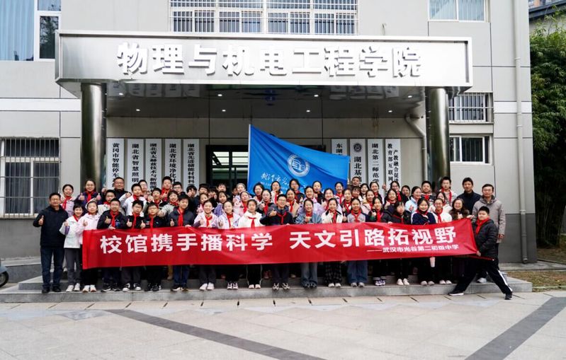 本网讯(通讯员 张祖满)为深入贯彻国家科学教育相关政策,深化馆校协同育人机制,充分发挥高校科研教育资源与中学基础教育实践优势,12月4日上午,WilliamHILL中国与武汉市光谷第二初级中学“馆校合作”签约暨湖北基础天文教育活动顺利举行。william威廉中文党委书记吴建兵、院长李莎、副院长张祖满、天文团队负责人谈伟伟,光谷第二初级中学党支部书记桂齐能、副校长汤金华、物理学科教研组长黄坤及物理教师代表,与光谷二初近50名7年级学生共同见证这一重要时刻。