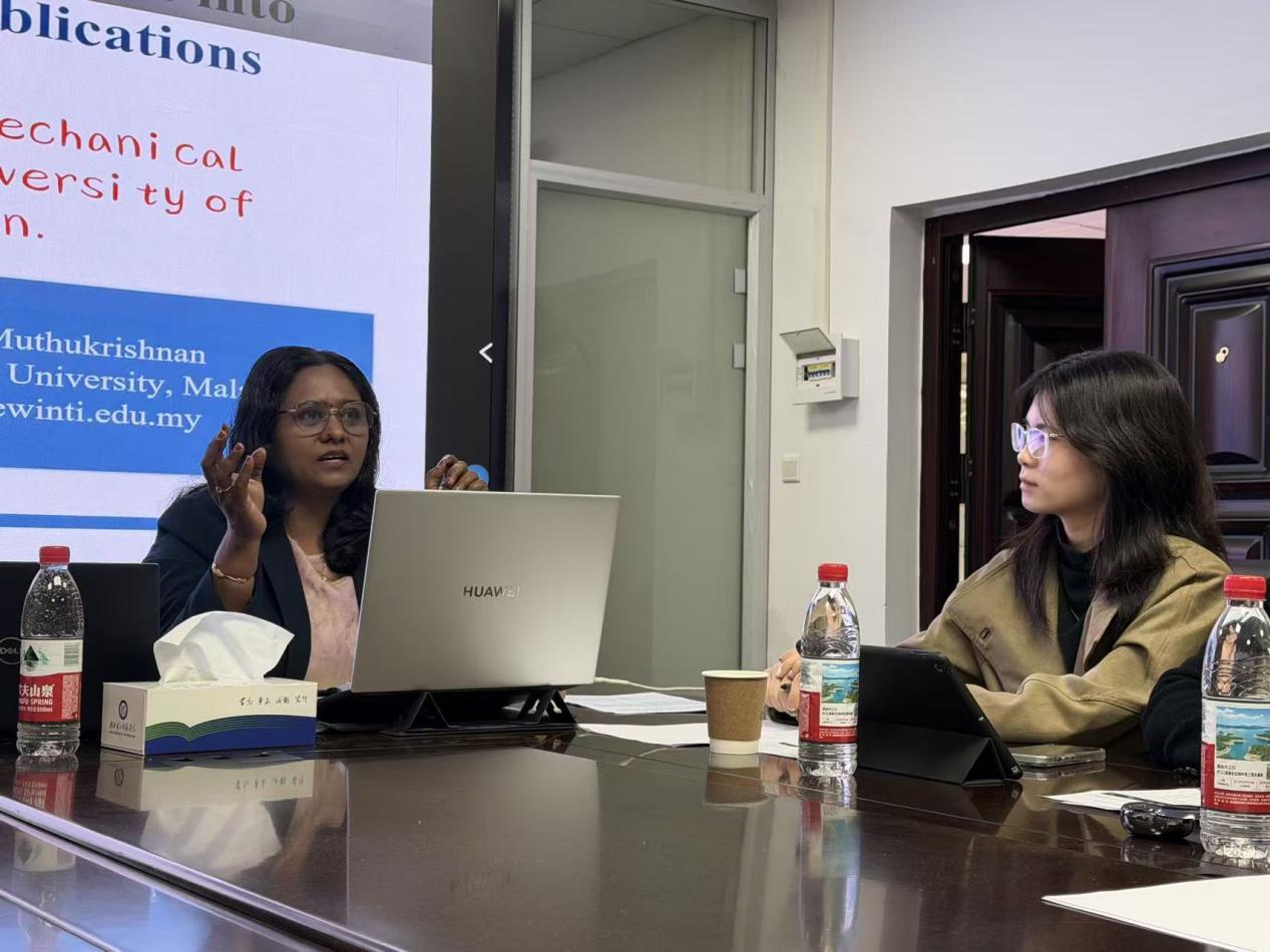本网讯(通讯员 王晓路)为助力教师将教学改革实践转化为高质量学术成果,提升国际期刊论文写作与发表能力,3月26日下午,william威廉中文(以下简称“物机学院”)在党员活动室举办“如何将教学实践转化为高质量学术成果——SSCI期刊论文写作与发表指南”专题国际工作坊。本次活动特邀省教育厅2026年世界著名科学家来鄂访学计划访问学者、马来西亚INTI国际大学高级讲师Dr. Priyadarshini Muthukrishnan担任主讲,学院8名具有副高级及以上职称、目前正承担或拟申报教学改革研究项目的骨干教师参加交流。